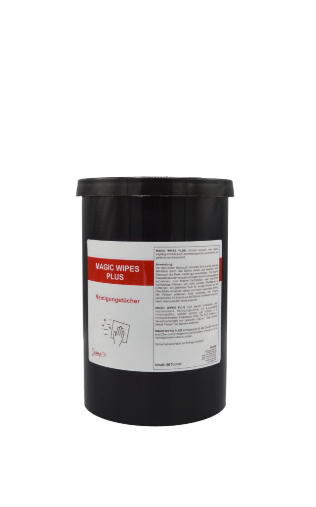 Mit MAGIC WIPES PLUS haben Sie leistungsstarke Reinigungstücher immer griffbereit – ideal für Werkstatt, Produktion, Handwerk und Gebäudereinigung. Einfach Tuch entnehmen, wischen, fertig. Gern unterstützen wir Sie dabei, MAGIC WIPES PLUS in Ihre Reinigungs- und Wartungsabläufe zu integrieren und den passenden Bedarf für Ihren Betrieb zu planen.